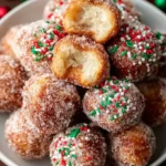 Quick and festive donut holes with a soft inside and a light, golden crust, perfect for the holidays.