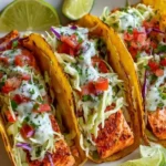 These tacos are fast, healthy, and full of bright flavors. The air fryer seals in the salmon’s natural juices while giving a light crust. The slaw adds crunch and a fresh citrus bite. You can make this on a weeknight or for a casual dinner with friends. It’s lighter than fried fish tacos but still satisfying. The recipe uses simple pantry spices and few steps, so it’s easy to repeat.