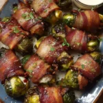 Delicious bacon-wrapped Brussels sprouts with a crispy exterior and tender interior, finished with a squeeze of lemon for added brightness. Perfect as an appetizer or side dish.