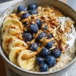 A warm bowl of creamy oats topped with caramelized bananas, chocolate syrup, and nuts for a comforting, dessert-like breakfast.
