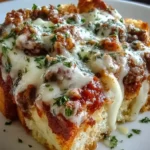 A one-pan dish that combines the warm, toasty flavors of garlic bread with the comforting layers of lasagna, featuring gooey cheese and tender noodles.