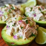 No cooking is required for this recipe if your chicken is already cooked. Spoon the chicken salad mixture into the avocado halves, pressing gently so the filling sits neatly in the cavity. If you reserved some avocado flesh, fold it into the salad for extra creaminess.