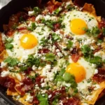 Chilaquiles con tocino, huevos y queso is a warm, satisfying Mexican breakfast that combines crisp tortilla chips, smoky bacon, soft scrambled eggs, and gooey melted cheese. It smells savory and bright from the salsa, and the texture mixes crunchy, creamy, and tender in every bite. This easy skillet dish comes together fast and makes a great weekend brunch or a lively weeknight dinner. For another bacon-forward comfort option, see my take on bacon and cheese loaded waffles for inspiration on using bacon in fun ways.