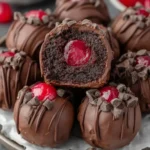 These chocolate covered cherry brownie bombs are small, rich bites combining fudgy brownie, a sweet maraschino cherry, and a crisp chocolate shell, perfect for parties or special treats.