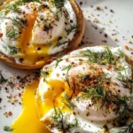 This dish marries creamy Greek yogurt, a touch of paprika, and perfectly poached eggs on toasted English muffins. It tastes bright and tangy from the yogurt, rich and silky from the egg yolk, and slightly smoky from the paprika. It’s a fast, impressive brunch option that feels special but is simple to cook. The textures — crunchy toast, creamy yogurt, runny yolk — make every bite satisfying.