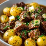This cooker garlic butter beef & potatoes recipe turns simple pantry ingredients into a cozy, satisfying meal. The beef becomes tender and rich, the potatoes soak up buttery garlic flavors, and the aroma fills the kitchen with warm, savory notes. If you want a gravy-forward option later, see a related beef and gravy over mashed potatoes recipe for serving ideas.