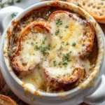 A slow cooker makes classic French onion soup easy, rich, and deeply comforting. Sweet, caramelized onions mingle with beef broth and white wine, creating a savory, slightly sweet broth that smells like home. Topped with crisp baguette and melted Gruyère, each spoonful is silky, cheesy, and warming. This crockpot version saves hands-on time and fills your kitchen with a sweet onion aroma while it simmers all day.