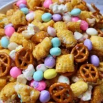 This snack mix is quick, festive, and crowd-pleasing. It’s perfect for Easter baskets, party bowls, school treats, or a movie-night snack. The white chocolate gives a creamy sweetness, pastel M&Ms add color and chocolatey crunch, and mini marshmallows bring soft, chewy bites. The texture balances light puff corn with candy crunch and optional nutty richness. You can make it in one bowl and it holds up well for sharing.