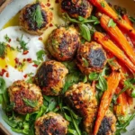 Let the meatballs rest for 5 minutes after baking so juices redistribute. Serve warm with fresh carrot sticks and a small bowl of yogurt for dipping. If you like, sprinkle extra chopped parsley and a little grated Parmesan on top for color and flavor.