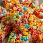 Fruity Pebbles Rice Krispie Treats are an easy, colorful dessert that delivers sweet, crispy, marshmallow-y goodness in every bite. They come together fast, store well, and invite playful variations. Try them for a casual snack, party treat, or a bright addition to any dessert table — and enjoy the simple comfort of a childhood favorite with a fruity twist.