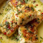 In a skillet over medium heat, melt 4 tablespoons of butter. Add the minced garlic and sauté until fragrant, about 1 minute — don’t burn it. Carefully place the seasoned cod fillets in the skillet. Cook for about 4–5 minutes on the first side without moving them, then flip and cook another 4–5 minutes, until the fish is opaque and flakes easily with a fork. Use a spatula and gentle touch so the fillets stay intact.