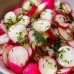 Gordon Ramsay’s radish salad is a bright, peppery side that wakes up the plate. Thinly sliced radishes add a crisp bite. Peppery arugula and fresh parsley bring herbaceous notes. A lemon-olive oil dressing adds shine and a fresh tang. This salad is quick, colorful, and perfect for spring or as a crisp counterpoint to rich mains like roasted fish or grilled meat. If you enjoy simple, fresh salads, you might also like this apple cranberry walnut salad for another crisp, seasonal option.