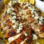 Bright, tangy Greek Chicken baked in a lemony garlic marinade, topped with crumbled feta for a savory finish.