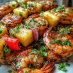 Bright and smoky grilled shrimp pineapple skewers with a delicious honey-soy marinade.