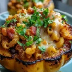 A cozy, slightly sweet-and-spicy weeknight bake featuring creamy chili-macaroni stuffed in tender roasted acorn squash.