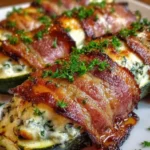 Smoky, creamy, and crisp zucchini boats filled with a rich cheese mixture and wrapped in bacon, perfect for low-carb meals or parties.