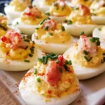 Elevate your appetizer game with these creamy Lobster Deviled Eggs, featuring sweet lobster meat and a tangy yolk filling.
