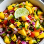 A bright and refreshing mango salsa with sweet mango, crisp red onion, and a touch of heat from jalapeño. Perfect for chips, grilled fish, or as a topping for tacos.