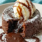 Make this molten lava cake when you want a fast, impressive dessert. It looks fancy but uses simple pantry ingredients. The outside is soft and chocolatey. The center pours out like warm fudge. It fills the kitchen with a rich chocolate aroma. Serve it warm to enjoy the contrast of textures: tender cake and liquid center. It’s great for celebrations, date nights, or any time you want a quick sweet treat.
