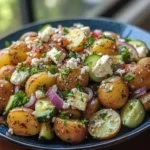 This salad is easy, fresh, and full of contrast. The potatoes give a creamy base while Kalamata olives add a bold, salty bite. Cherry tomatoes bring bright sweetness and cucumber adds a cool crunch. The simple dressing of olive oil, red wine vinegar, and oregano ties everything together without masking the ingredients. It’s perfect for potlucks, weeknight dinners, or a picnic. It travels well, tastes great chilled or at room temperature, and pairs with grilled meats, fish, or a mezze platter.