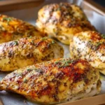 You’ll rub the breasts with olive oil and spices, bake them until the center reaches 165°F (75°C), then let them rest so juices redistribute. The method keeps things simple but delivers a juicy texture and a mild, savory taste. Use a thermometer for best results.
