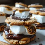 - Add marshmallows on top of the chocolate and press gently with the remaining graham crackers to form sandwiches.