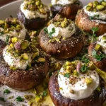 Remove the mushrooms from the oven and let them rest for a few minutes. Garnish with chopped fresh herbs like parsley or chives. Serve warm so the filling is creamy and the pistachios remain pleasantly crunchy.