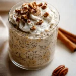 This recipe is fast, healthy, and full of fall spice. It needs no cooking. You make it the night before and wake to a ready breakfast. The pumpkin adds vitamin A and a silky mouthfeel. Pumpkin spice gives warm, aromatic notes of cinnamon, nutmeg, and clove. It’s great for busy mornings, meal prep, or a cozy snack. The flavors smell like pumpkin pie but the dish is lighter and more wholesome.