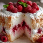 A light and airy dessert combining sweet angel food cake with tart raspberries, perfect for summer gatherings.