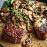 Bright, savory, and richly satisfying, these ribeye steaks paired with a creamy mushroom peppercorn sauce make a restaurant-quality meal at home. The steaks sear to a caramelized crust while the sauce blends earthy mushrooms, a touch of Dijon, and bold crushed peppercorns into a silky cream that coats each bite. If you like a deep mushroom flavor, you can check a recipe for a rich base like a best creamy mushroom soup for ideas on mushroom texture and seasoning that translate well to this sauce.