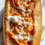 This recipe is simple. Toss shredded cooked chicken with buffalo sauce. Warm briefly if you like hot filling. Toast the rolls for crunch. Layer the sandwich with lettuce, tomato, and blue cheese dressing. Serve immediately for best texture.