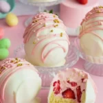 These playful Easter Egg Bombs combine sweet white chocolate shells with a fluffy strawberry shortcake filling, perfect for spring celebrations.