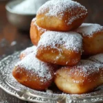 Serve beignets warm with a dusting of powdered sugar. They pair beautifully with strong coffee, hot chocolate, or a glass of cold milk. For a grown-up touch, serve with a small bowl of vanilla crème anglaise, chocolate sauce, or fruit compote for dipping. Present them on a platter with extra powdered sugar for guests to add as they like.